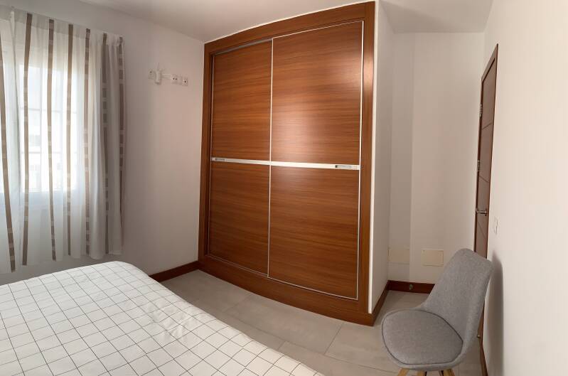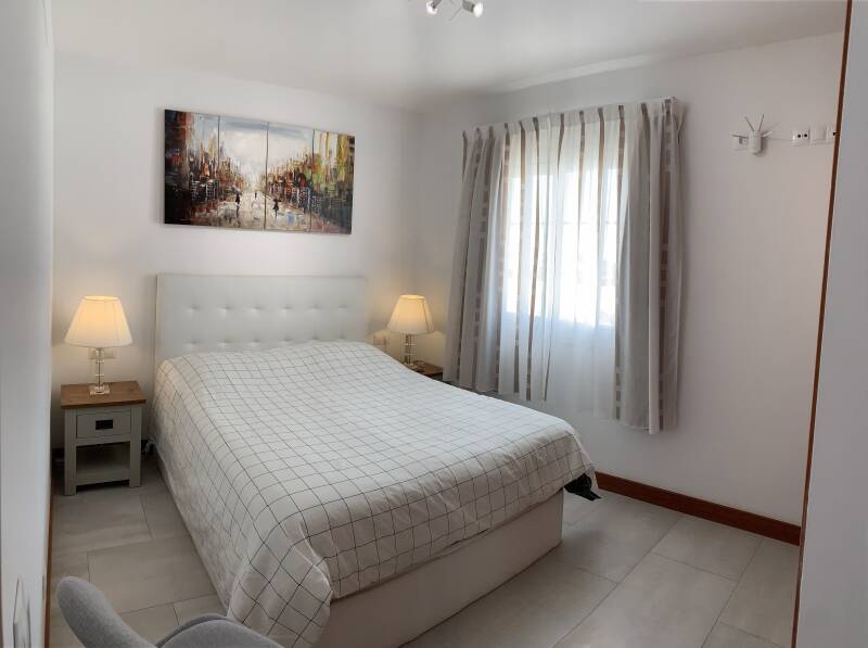 From this room, you can see between the white cottages, the beautiful blue sea!