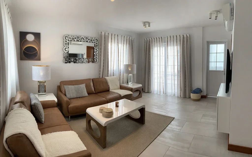 From the living room there is a direct passage to :- terrace/lounge/pool- dining area- kitchen- stairs to second floor- entrance hall